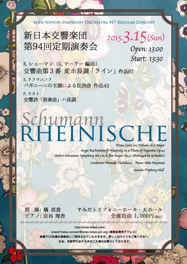 曲目 R.シューマン(マーラー編曲)/交響曲第3番 変ホ長調「ライン」 作品97
